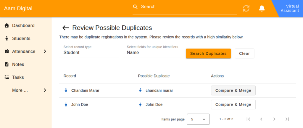 As a case management system, Aam Digital allows you to manage and organize your data and link various details – surveys, attendance records, evaluation results – to a single beneficiary profile. Keeping that data clean is essential: a duplicate registration doesn’t just clutter your database, it skews your reports and makes it harder to get a reliable picture of who you are actually reaching.